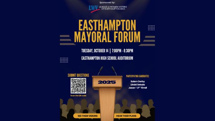 - Easthampton Mayoral Candidate Forum at The Williston Northampton School Theatre 10/13/25